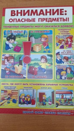 Если вы обнаружили неизвестный предмет в учреждении, немедленно сообщите о находке администрации или охране.
